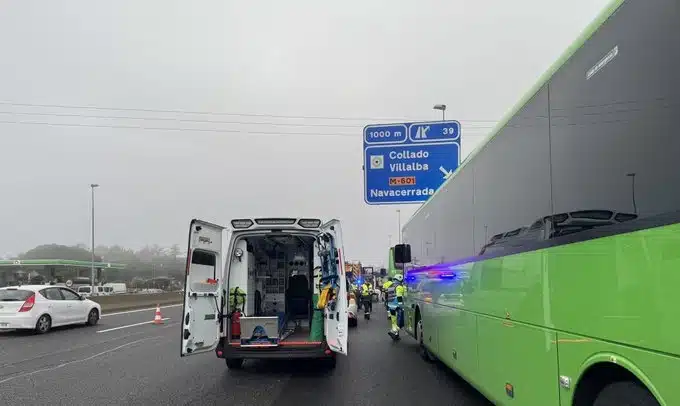 Veinticuatro personas han resultado heridas, dos de ellas de carácter grave y cuatro moderado, en un accidente por alcance entre un camión, un autobús y una furgoneta, ocurrido en el kilómetro 37,900 de la A-6, a la altura de la localidad madrileña de Collado Villalba.