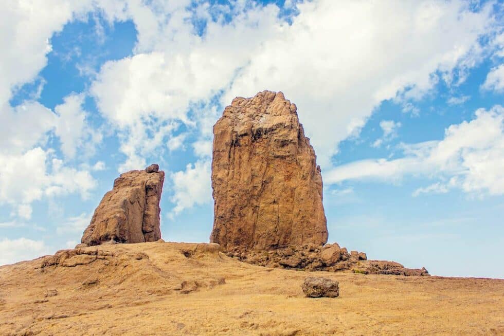 El Roque Nublo o hijo del volcán, es un monolito situado en el municipio de Tejeda y es considerado uno de los símbolos más emblemáticos de la isla desde que en 1994 fuera protegido por la ley Espacios Naturales de Canarias como monumento natural. Y es que se trata de un resto erosivo de una colada piroclástica de bloques y cenizas soldadas originada por la erupción explosiva de un estratovolcán que pudo alcanzar hasta los 3000. En la antigüedad fue utilizado como lugar de culto aborigen y se estima que el roque se eleva cerca de 1813 sobre el nivel del mar.