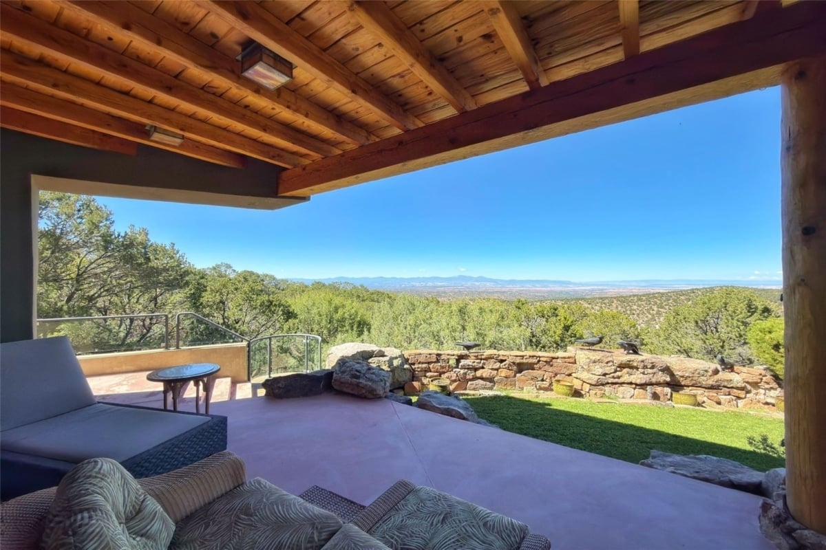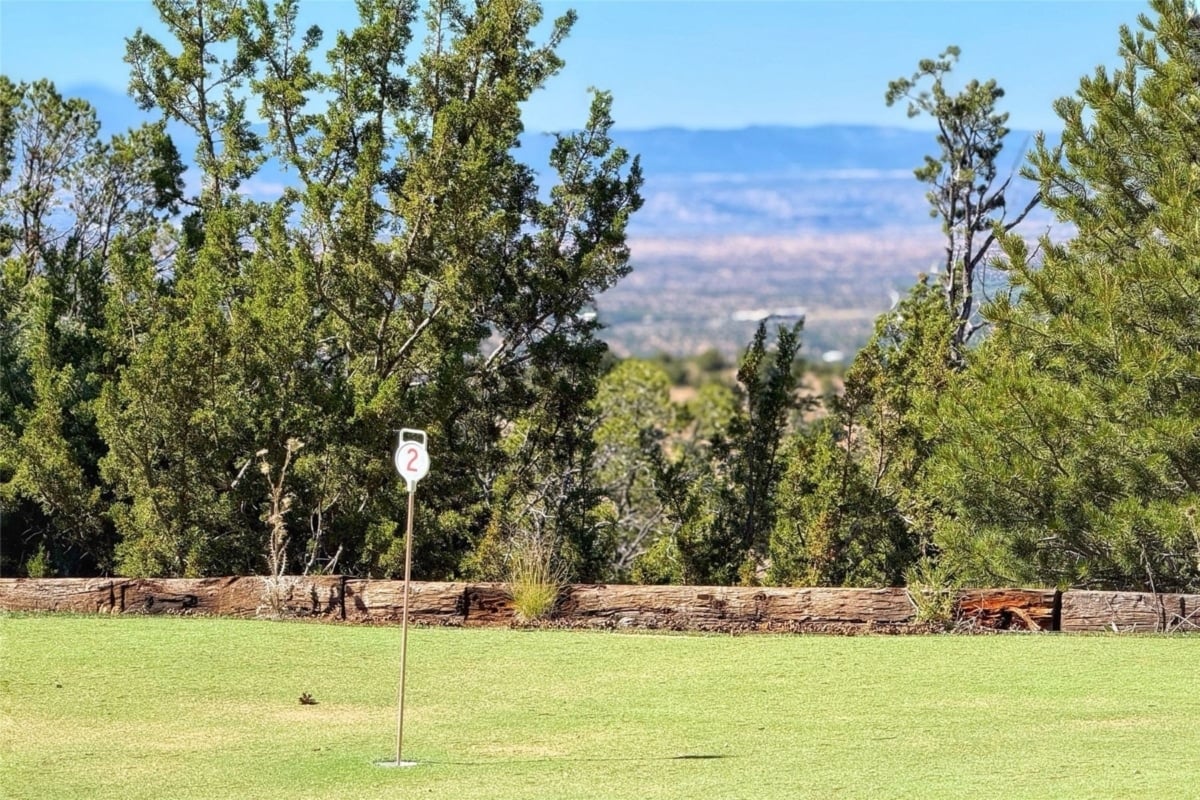 La parcela, en su mayor parte arbolada, incluye piscina, jacuzzi cubierto con vistas a la ciudad, varios espacios exteriores para reuniones o meditación, un green de golf privado y garajes para hasta seis vehículos.