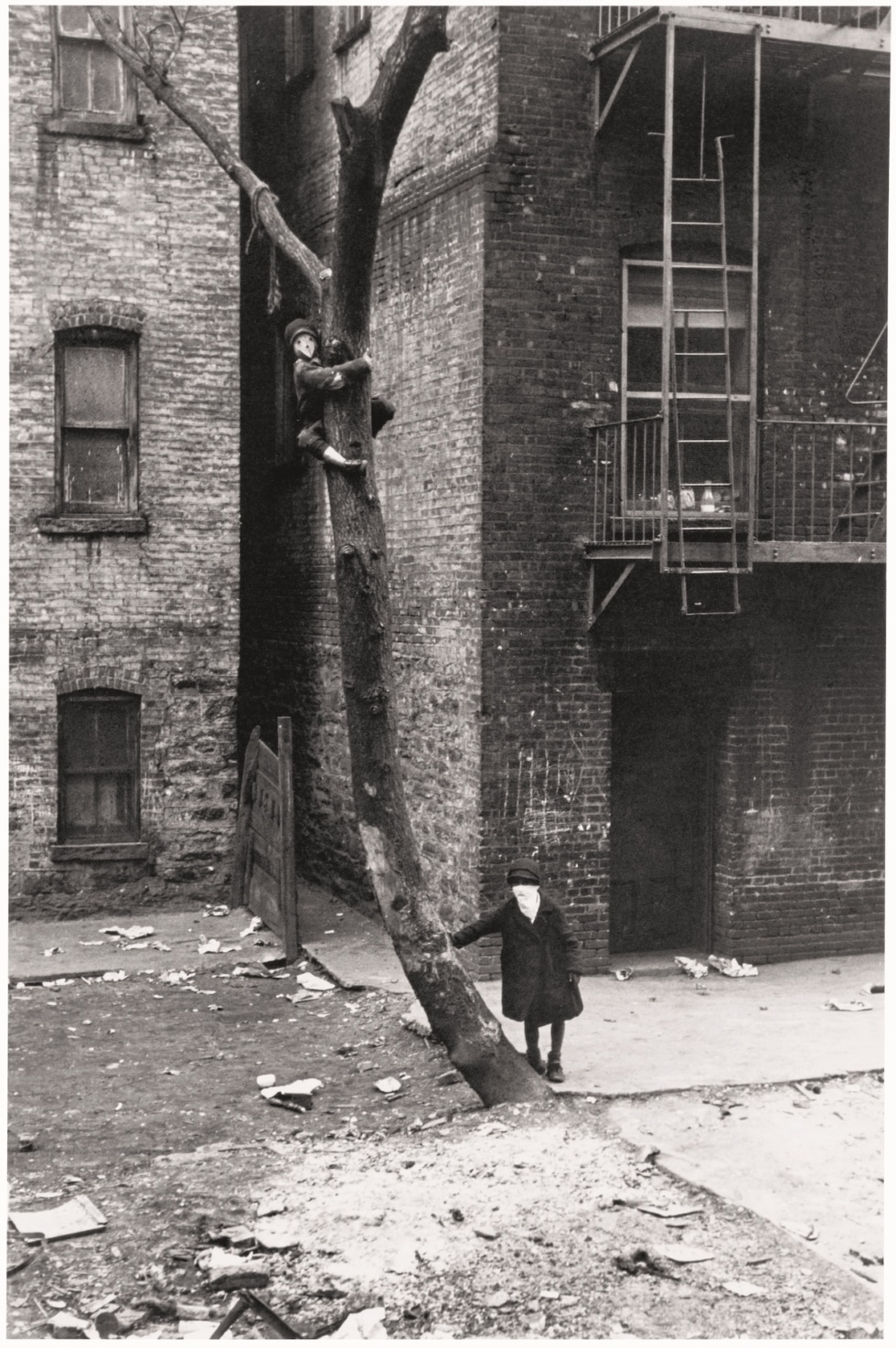 Nacida en Brooklyn en 1913 en el seno de una familia ruso-judía, Levitt abandonó pronto el instituto y se formó como aprendiz de fotografía en un estudio del Bronx. Compró su primera cámara en 1934 y poco después se integró en la New York Film and Photo League. El encuentro con Henri Cartier-Bresson en 1935 resultó decisivo: a partir de entonces trabajó de manera independiente y entre 1938 y 1942 tomó muchas de las imágenes que la situaron en la primera línea de la fotografía del siglo XX. Con su Leica colgada al cuello, ligera y discreta, recorrió las aceras de Harlem y el Lower East Side como quien no quiere interrumpir nada, dejando que la ciudad se revelara sola ante el objetivo.