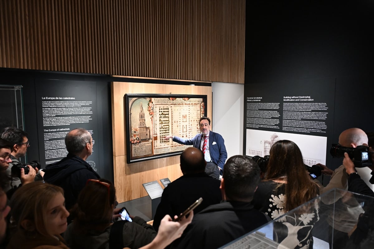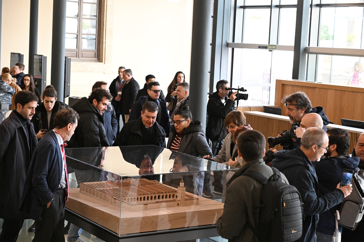 El dispositivo museográfico combina maquetas –entre ellas una que ofrece la denominada “quinta vista” del monumento–, recreaciones videográficas de sus distintas etapas constructivas y la exhibición de piezas que no se habían mostrado hasta ahora. La integración tecnológica no se ha planteado como superposición ornamental, sino como herramienta para contextualizar un espacio cuya complejidad histórica exige mediación.