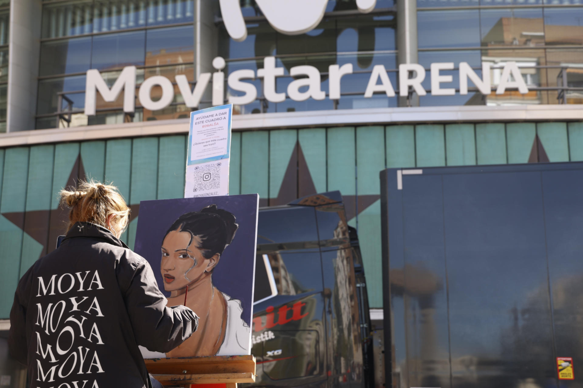 A unos metros, una joven pinta desde las 9 de la mañana un retrato de la artista sobre un lienzo con la intención de entregárselo “en mano”. “Tengo otras tres oportunidades si no puedo hoy”, ha explicado, confiando en poder hacerlo en alguno de los próximos conciertos.
