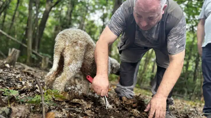 La clave está en el tiempo. “Puedes pasar por un sitio y no encontrar nada. Una hora después, hay olor y el perro la detecta”. La trufa no emite aroma hasta el final de su ciclo. Antes es invisible. Ese factor explica su valor. La trufa blanca puede alcanzar precios de varios miles de euros por kilo, muy por encima de la negra. También explica su fragilidad: apenas dura unos días. “Lo mejor es comerla lo antes posible”, aconseja Vacchina. Y añade con sorna: “Y no compartirla demasiado”.
