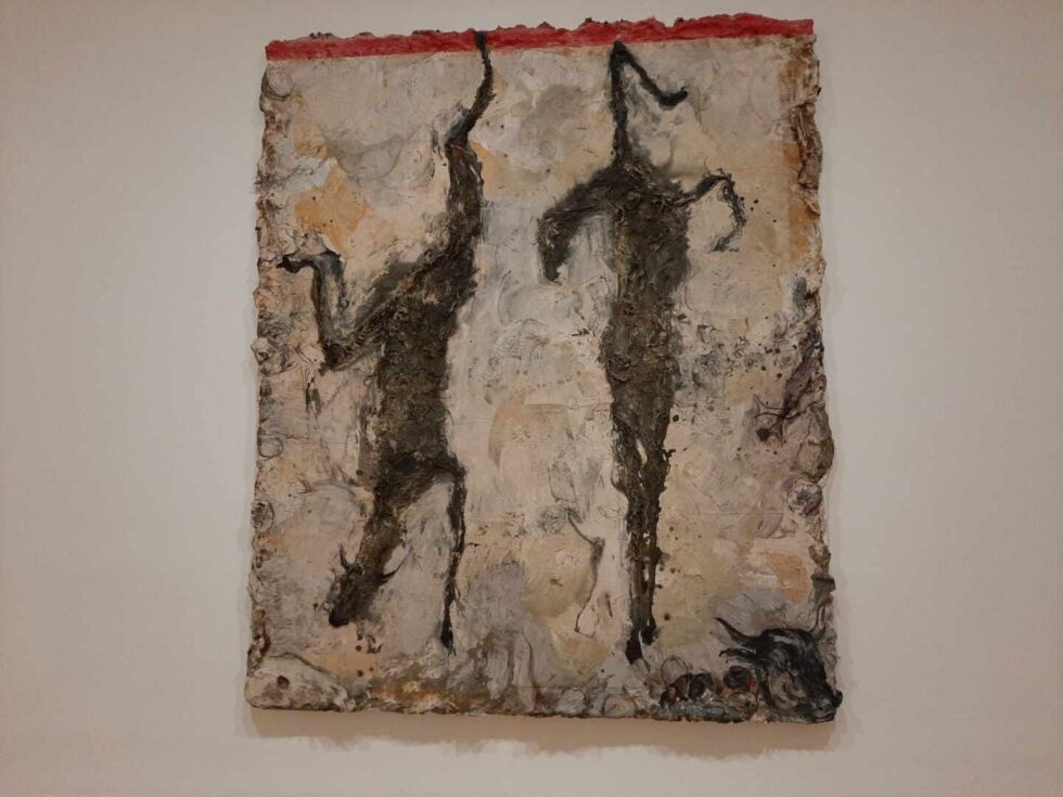 La tercera de las salas está dedicada a la experimentación en los materiales, en los métodos. Se trata de obras abstractas que emplean materiales poco tradicionales: pintura comercial, cerámica, pizarra, tiza… Se convierten en una llamada a experimentar con los materiales y los métodos para crear arte. La obra de Sigmar Polke es fiel reflejo de ello. En su obra ‘La erección matutina de Kathreiner emplea pintura acrílica, un collage sobre lienzo y textil, madera o pedazos de lienzos descartados.