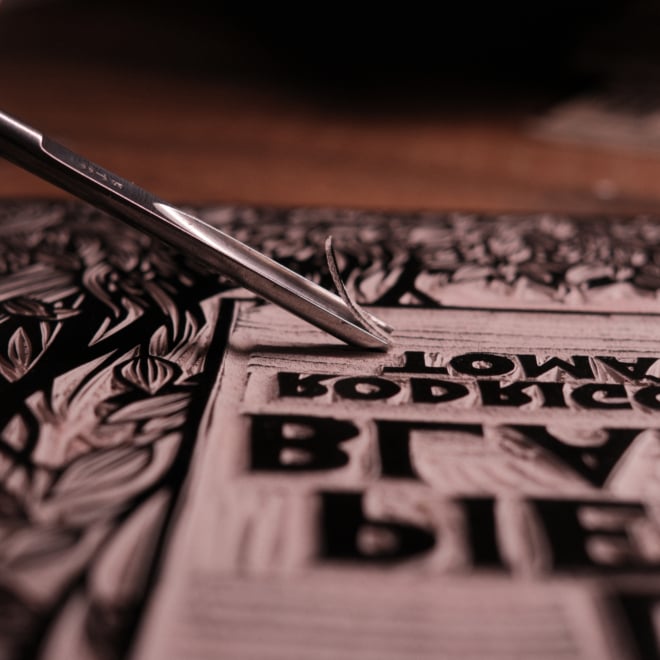 Tomás Hijo recuerda cómo comenzó todo en un bar de Madrid, mientras Rodrigo le explicaba su última locura al mismo tiempo que “se zampaba una tostada enorme”. La propuesta era diferente y emocionante, una locura difícil de explicar y compleja de ejecutar. No era un cómic, pese a estar basada en una suerte de sucesión de viñetas individuales, dos a lo sumo, por página. Tampoco una novela ni un libro de arte. Tendría un poco de todos ellos. Lo que sí pudo imaginar, aunque no hasta qué extremo, era que la meticulosidad y la precisión que exige trabajar con Rodrigo en un libro basado en planchas talladas en las que no cabe el error ni la corrección: “Juro que ha llegado a cuestionar la longitud de una tilde”.