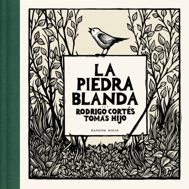 En la ‘Piedra blanda’ la primera sorpresa llega por el tacto, por la sensación de tener entre las manos un libro diferente. El relieve de su portada es la plancha más valiosa que Tomás guarda en su casa. En ella un jilguero, un bosque y el relieve. Abrir sus páginas es como subirse a un tren de viaje extraño e incierto por la vida del protagonista. En fondo y forma. La historia de Pedro de Poco, el protagonista, es particular, el modo de contarla también.
