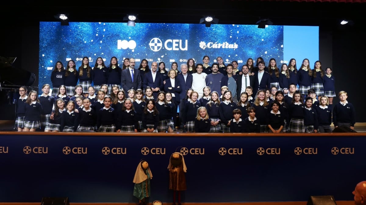 El CEU ha lanzado por sexto año consecutivo su tradicional villancico en beneficio de Cáritas. En esta ocasión ha sido interpretado por los Hermanos Martínez, acompañados por los niños del coro del Colegio CEU San Pablo Sanchinarro, quienes han puesto su voz a este proyecto solidario, en el que también colabora CADENA 100, con una pieza musical inédita titulada Feliz Navidad.