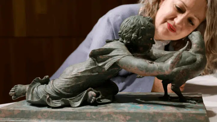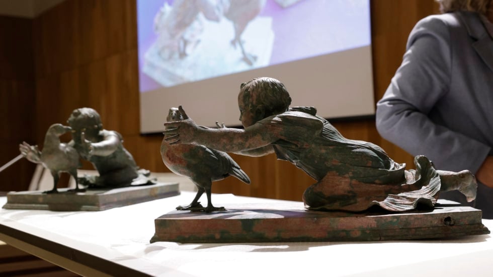 La Policía ha recuperado dos excepcionales grupos escultóricos de bronce de época romana, datados entre los siglos I y II d.C., que fueron expoliados de un yacimiento del sur de España entre 2007 y 2008 y subastados en 2012 tras blanquear su procedencia. Las piezas, cedidas de manera irrevocable y gratuita por un coleccionista estadounidense, han sido depositadas este jueves en el Museo Arqueológico Nacional, en un acto en el que participaron responsables policiales y la directora general de Bellas Artes del Ministerio de Cultura.