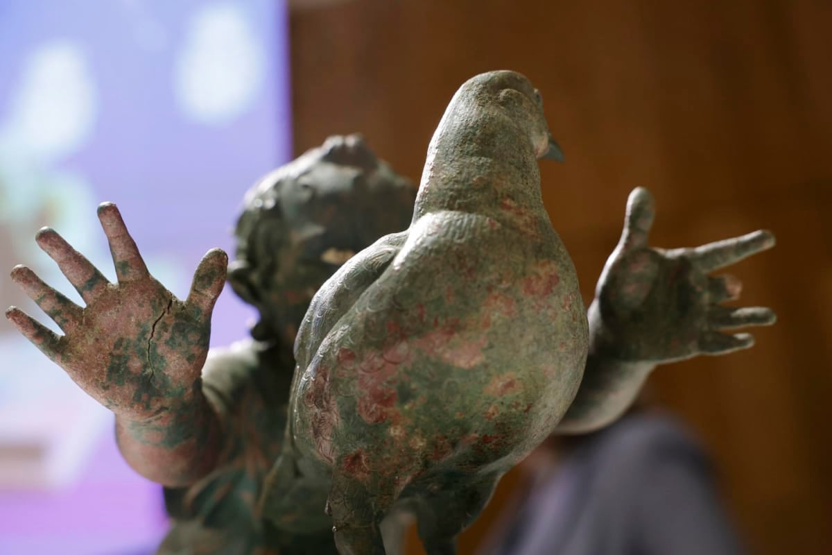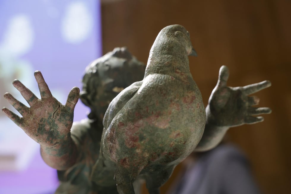 Estos grupos escultóricos destacan por su calidad artística, dimensiones y singular iconografía. Cada obra representa a una niña pequeña persiguiendo una perdiz, un motivo poco frecuente en la escultura romana conservada hasta hoy. El estado de conservación de estos bronces, incluidos sus soportes originales de metal, convierte el hallazgo en algo excepcional.
