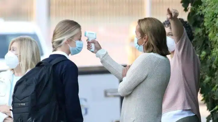 A ambas, protegidas por mascarilla, les tomaron la temperatura antes de acceder al edificio. Tras el positivo detectado, la dirección del colegio envió a las familias un mensaje de tranquilidad asegurando que "no hay ningún motivo de alarma" y que el origen del contagio fue externo. "El resto de los alumnos del colegio pueden y deben acudir a sus clases sin mayor preocupación", se afirmaba en el correo electrónico remitido a las familias de los alumnos.
